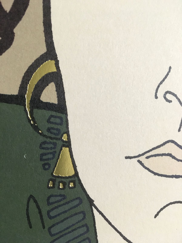 The earrings are printed with shiny gold metallic ink.