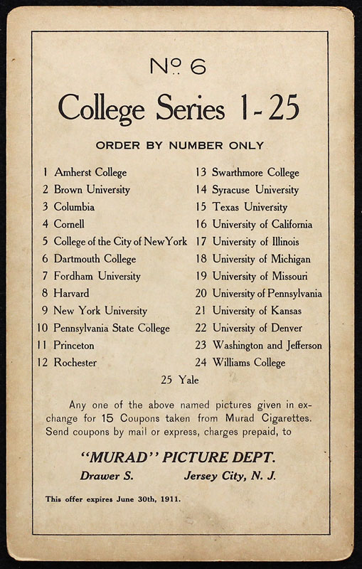 Card No 6 Type 2 variant: "College Series 1 to 25" on right side