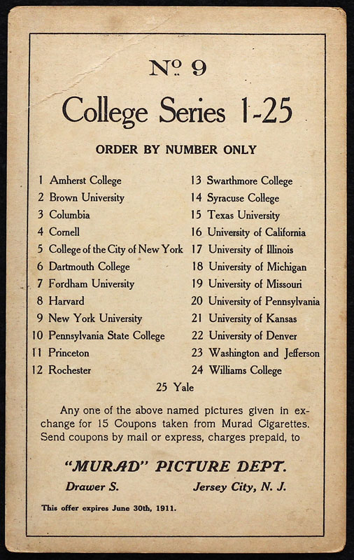 Card No 9 Type 1 variant: "College Series 1 to 25" in middle