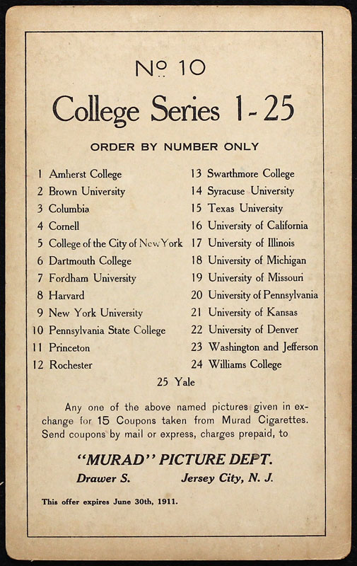 Card No 10 Type 2 variant: "College Series 1 to 25" on top