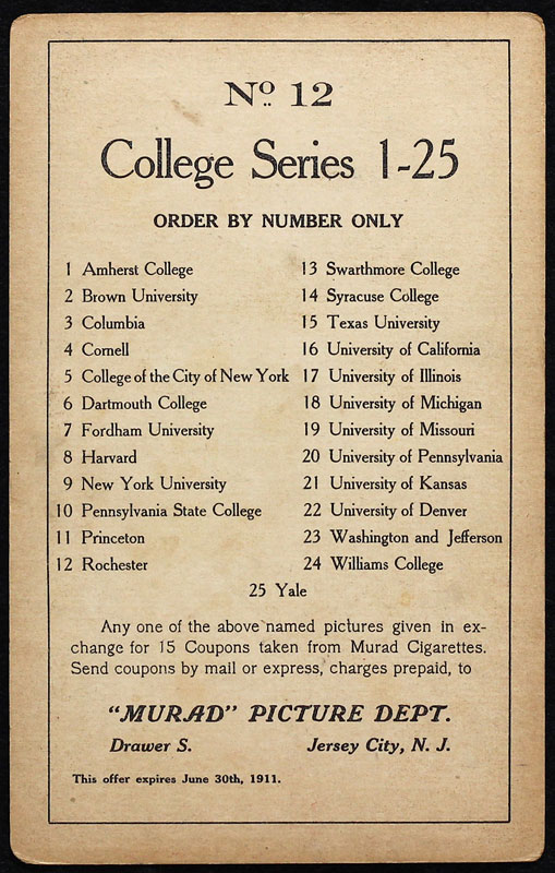 Card No 12 Type 1 variant: grey cap and trousers, "College Series 1 to 25" on left