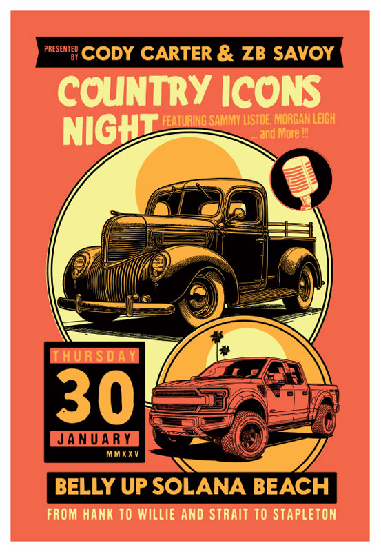 Scrojo Country Icons Night - Cody Carter & ZB Savoy Poster