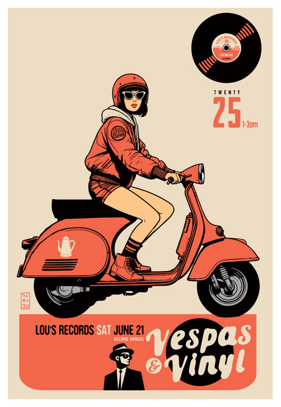 Scrojo Vespas & Vinyl Poster