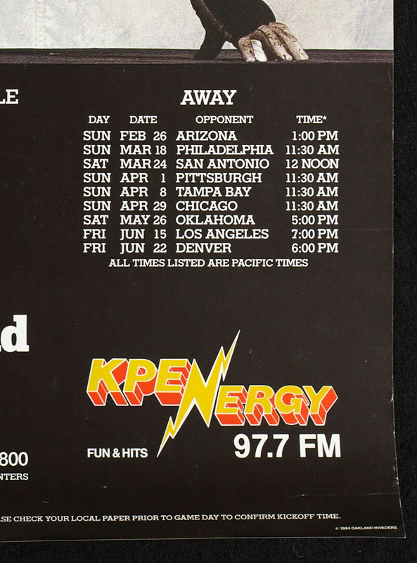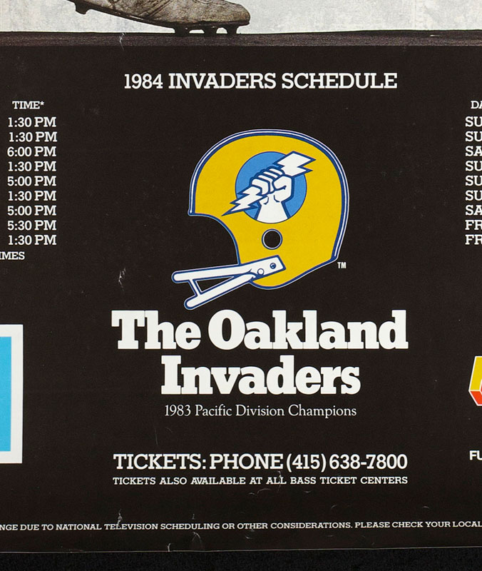 Oakland Invaders Second Season 1984 USFL Football Schedule Poster