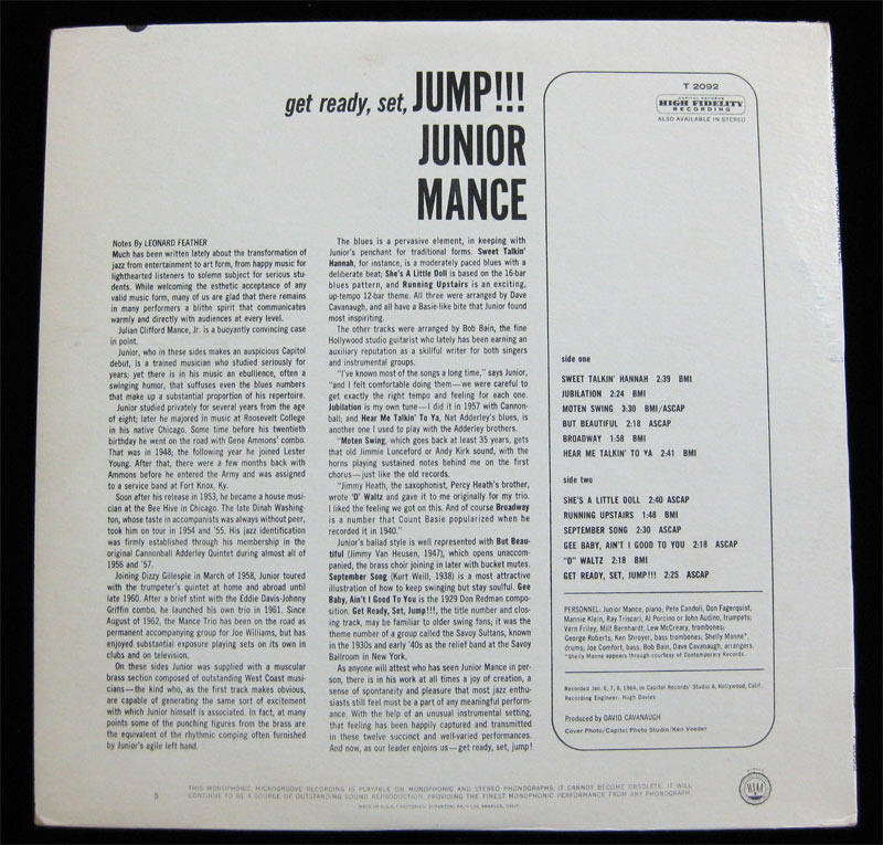 Junior Mance Trio With The Bob Bain Brass Ensemble Get Ready, Set, Jump!!! Vinyl LP
