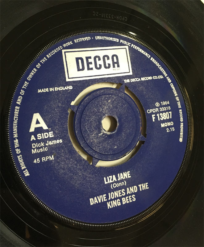 Davie Jones and the King Bees (David Bowie) Decca F13807 45 Vinyl
