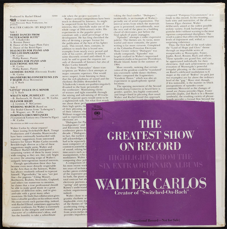 This LP features arrangements of Classical works as well as Burt Bacharach's What's New Pussycat?, The Beatles' Eleanor Rigby and three originals by Carlos.