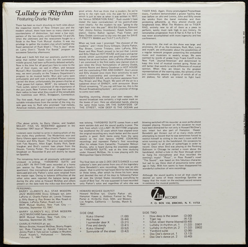 Charlie Parker Lullaby in Rhythm Sealed Vinyl LP