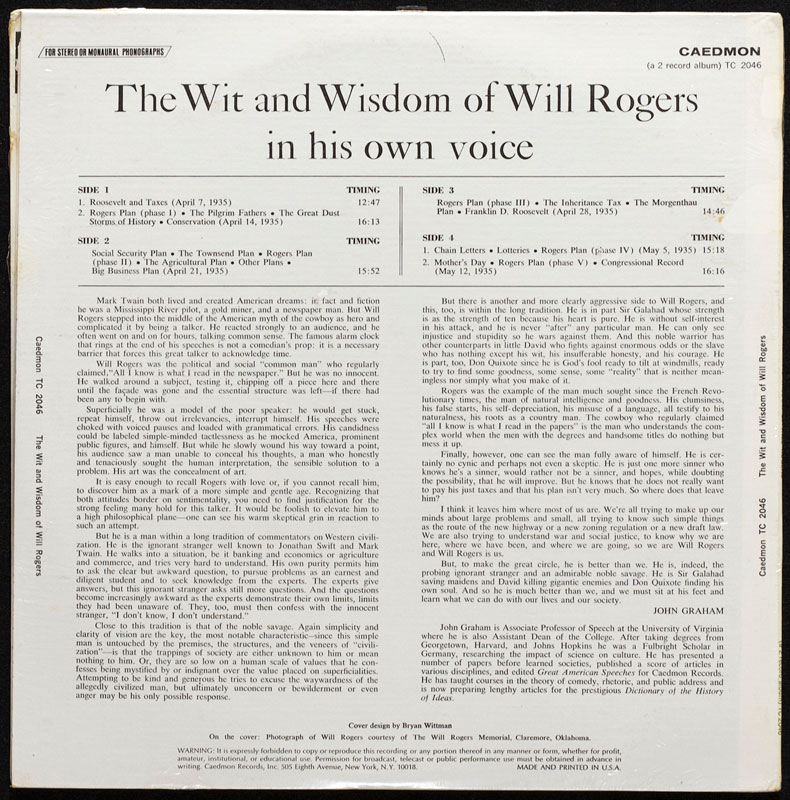 Will Rogers The Wit and Wisdom of Sealed Vinyl LP